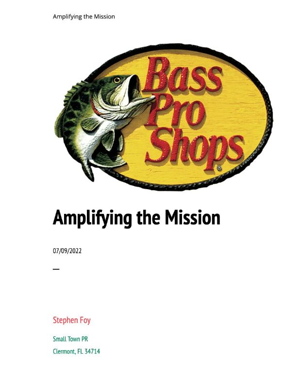 The above campaign proposal for Bass Pro Shops was done as my Capstone Project for my masters program that included a SWOT analysis, audience segmentation, social media strategies, and ROI projection.
