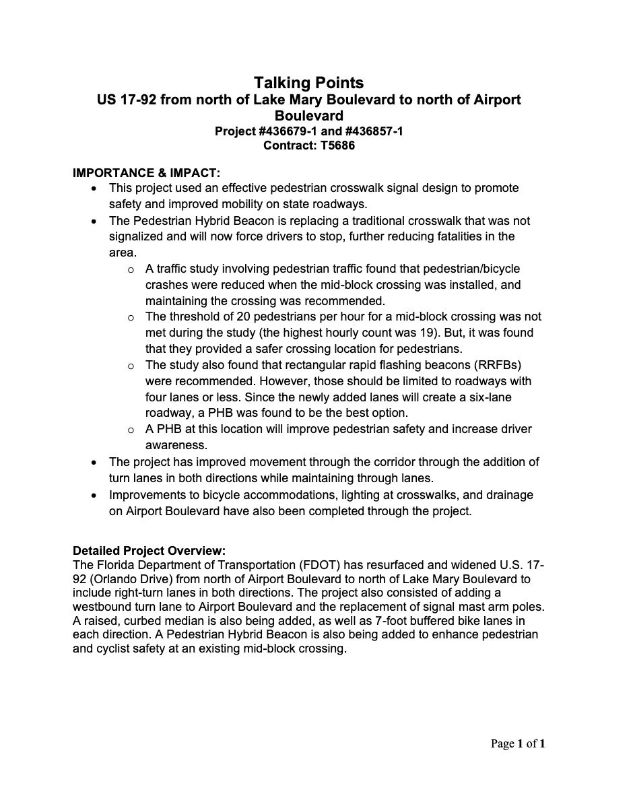 Above is a report that was done to summarize findings for a traffic study near Cape Coral, FL (right) and talking points for media outlets who attended an opening event for a new pedestrian traffic device (left). Both these documents exemplify my experience with audience research, analyzing data, and media relations.
